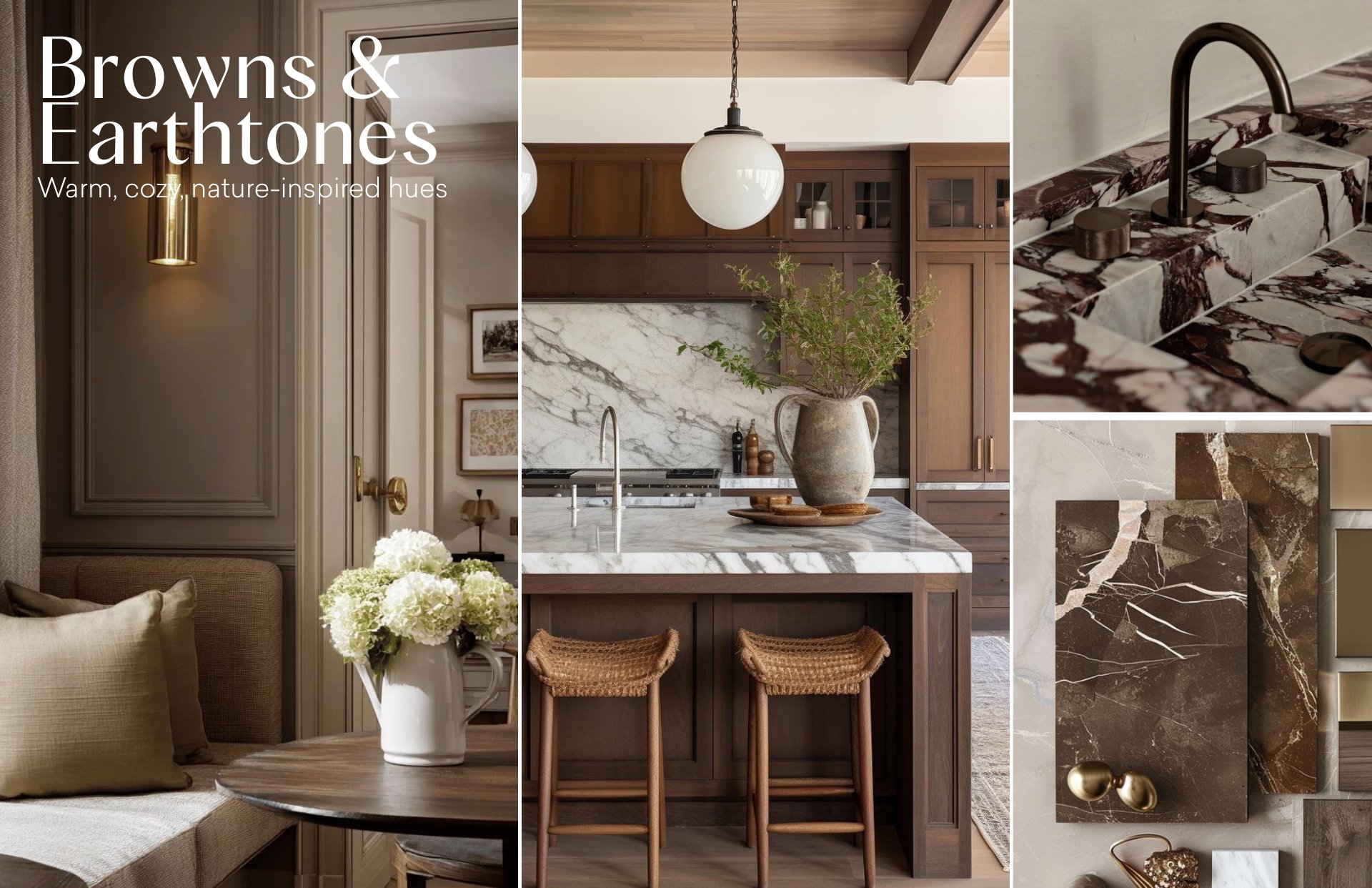 Warm browns and earth-inspired neutrals are redefining modern interiors. Instead of cool greys, designers are leaning into tones like mushroom, camel, soft taupe, and sand. These colours provide a gentle backdrop that allows craftsmanship, texture, and architectural details to stand out.
